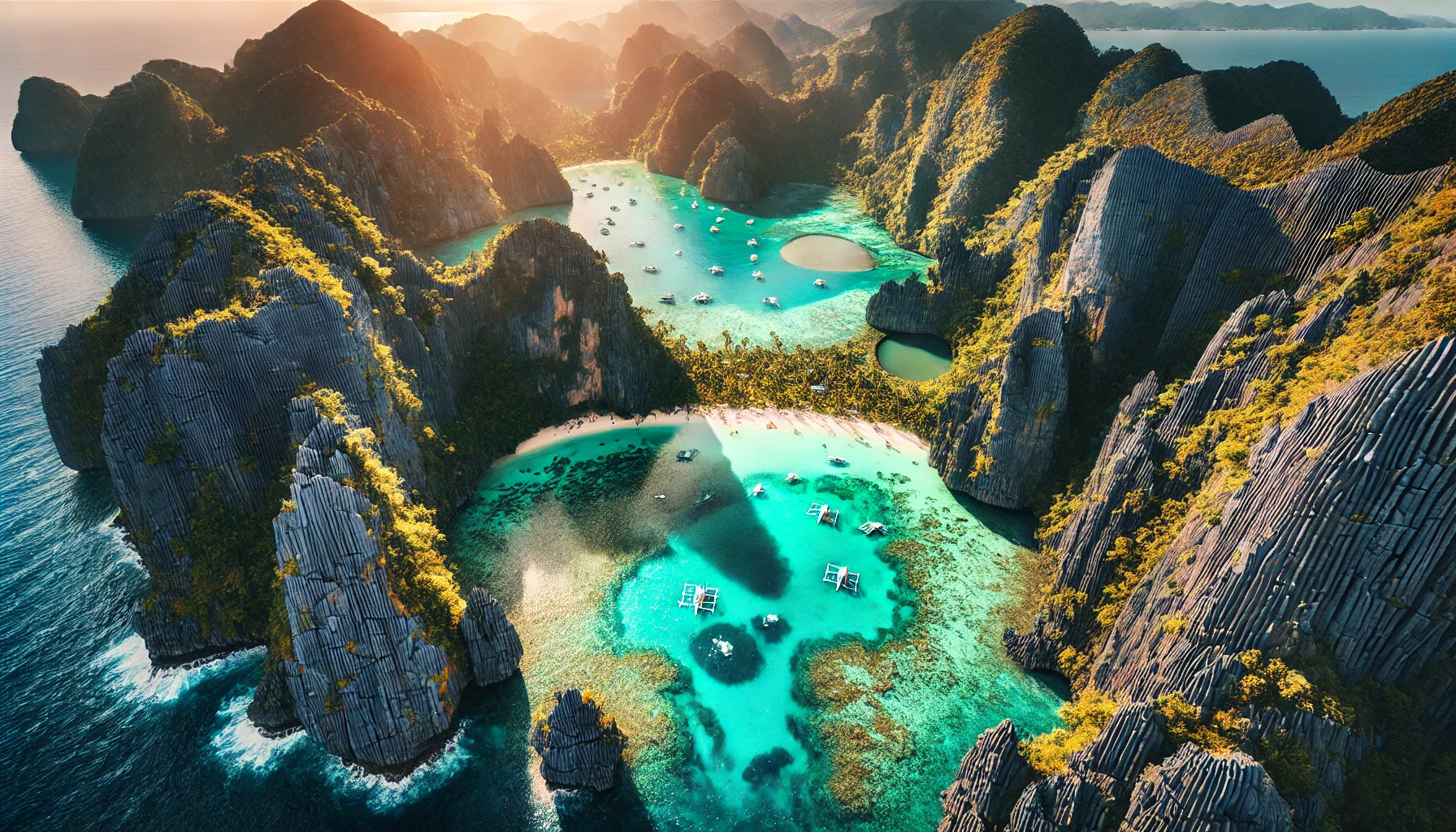 팔라완은 거대한 석회암 절벽과 에메랄드빛 바다, 다양한 해양 생물들로 가득 차 있습니다. 엘니도와 코론은 팔라완에서도 가장 유명한 두 지역으로, 각각 고유한 매력을 가지고 있습니다. 엘니도는 믿을 수 없을 정도로 아름다운 석호(Lagoon)와 섬들이 특징이고, 코론은 난파선 다이빙과 비밀스러운 자연경관이 인상적인 곳이죠.